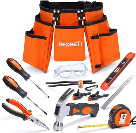 Rexbeti 15pcs Young Builder S Tool Set With Real Hand Tools Reinforced Kids Tool Belt Waist 20 32 Perfect Kids Learning Tool Kit For Home Diy And Woodworking Construction Tools Amazon Canada