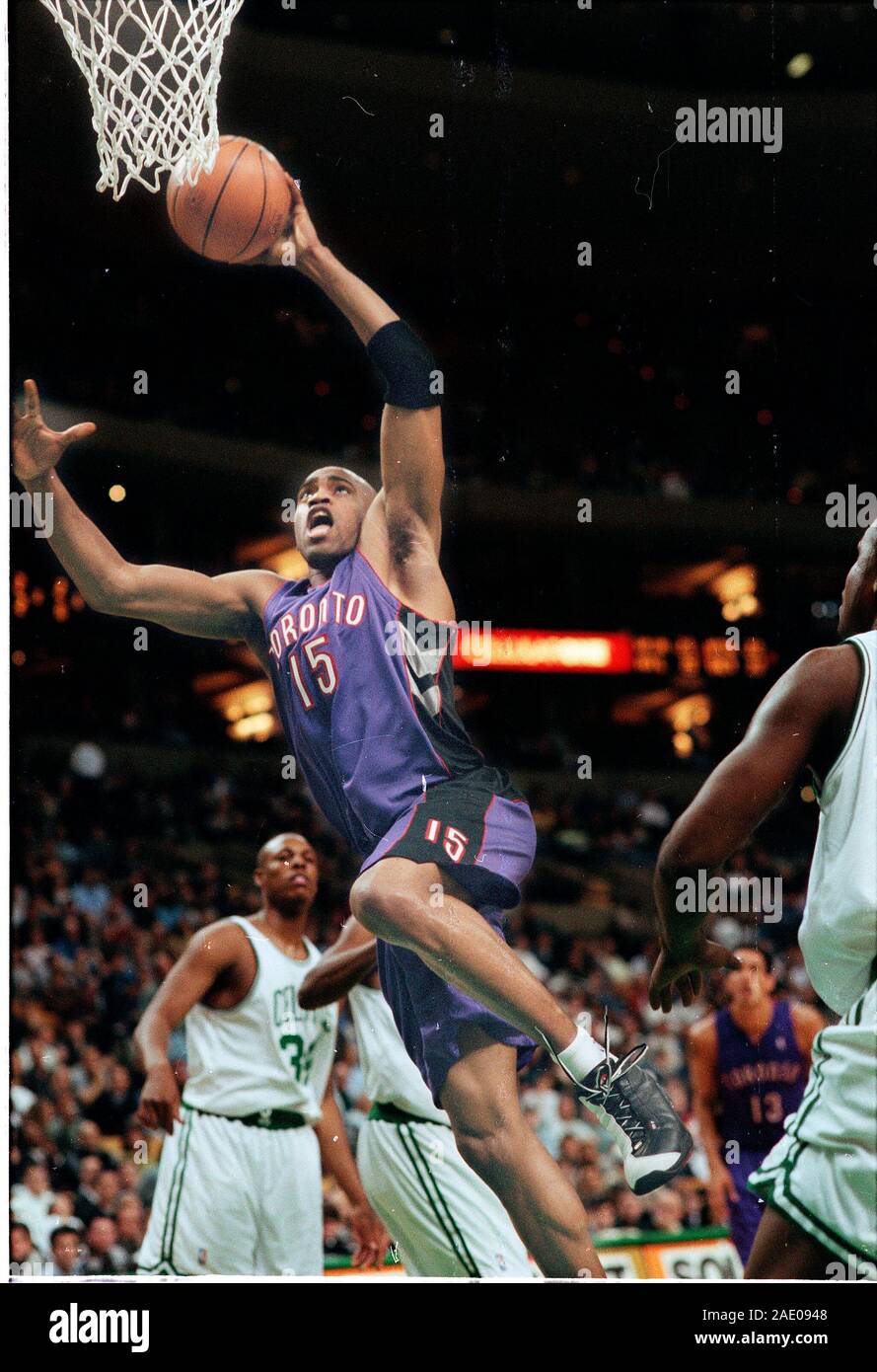 Toronto Raptors 15 Vince Carter Shoots Against Boston Celtics In Basketball Game Action At The Fleet Center In Boston Ma Usa Mar 1 2000 Photo By Bill Belknap Stock Photo Alamy