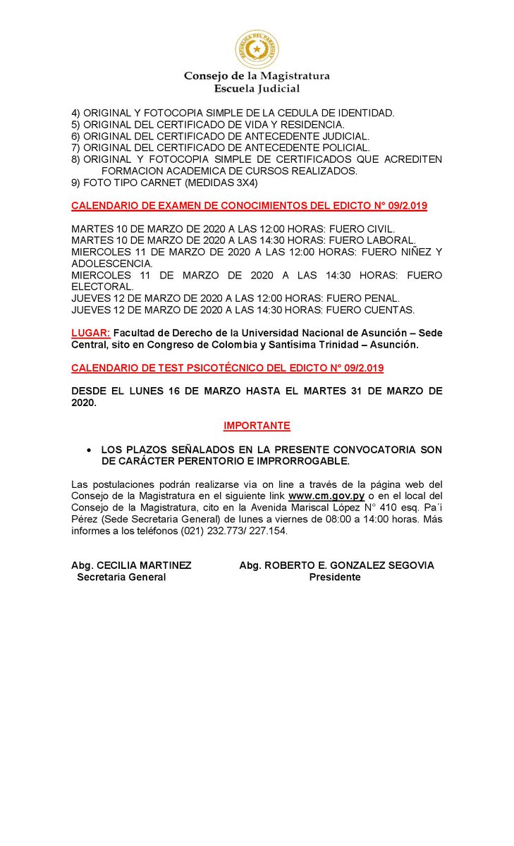 Consejo De La Magistratura Del Paraguay On Twitter Publicacion De La Convocatoria Del Edicto N 09 2019 Postulacion Por 20 Dias Del 02 Al 23 De Diciembre De 2019 Para Cargos Vacantes Y
