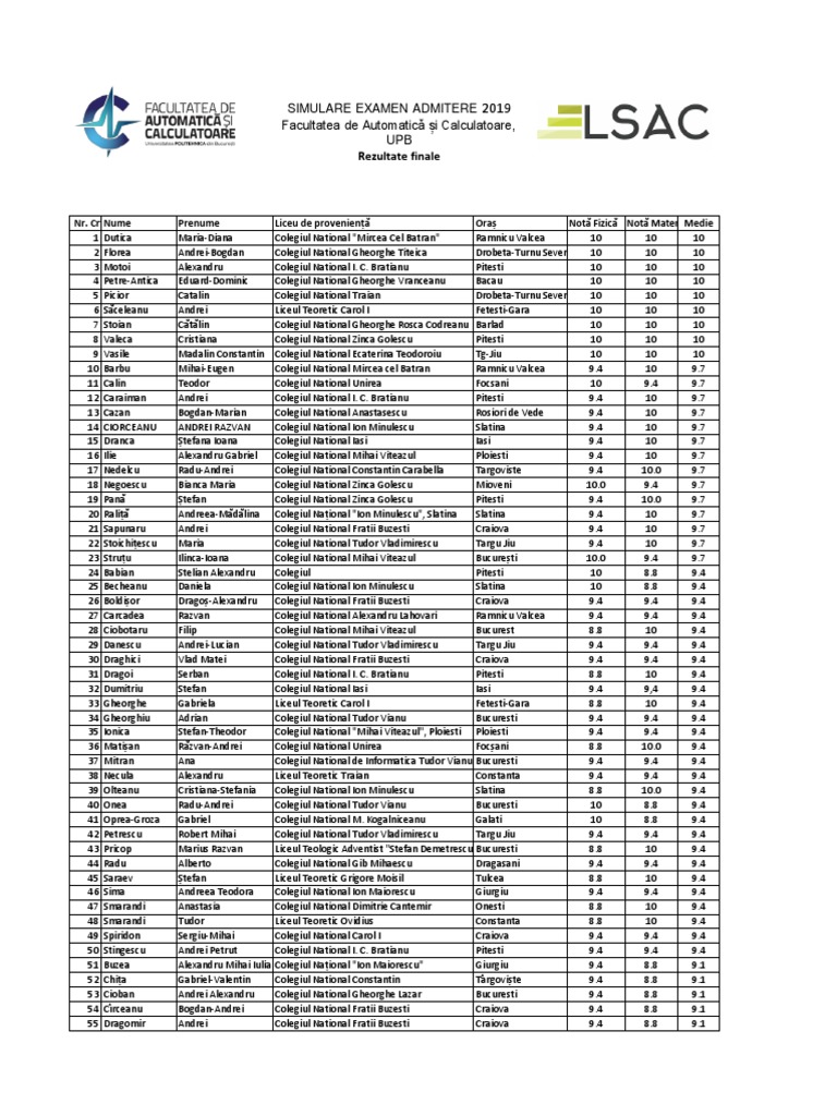 Rezultate Admitere Politehnica 2019 Ultima Medie De Admitere La Automatică Si Electronică Verifică După Nume Romaniatv Net Mobi